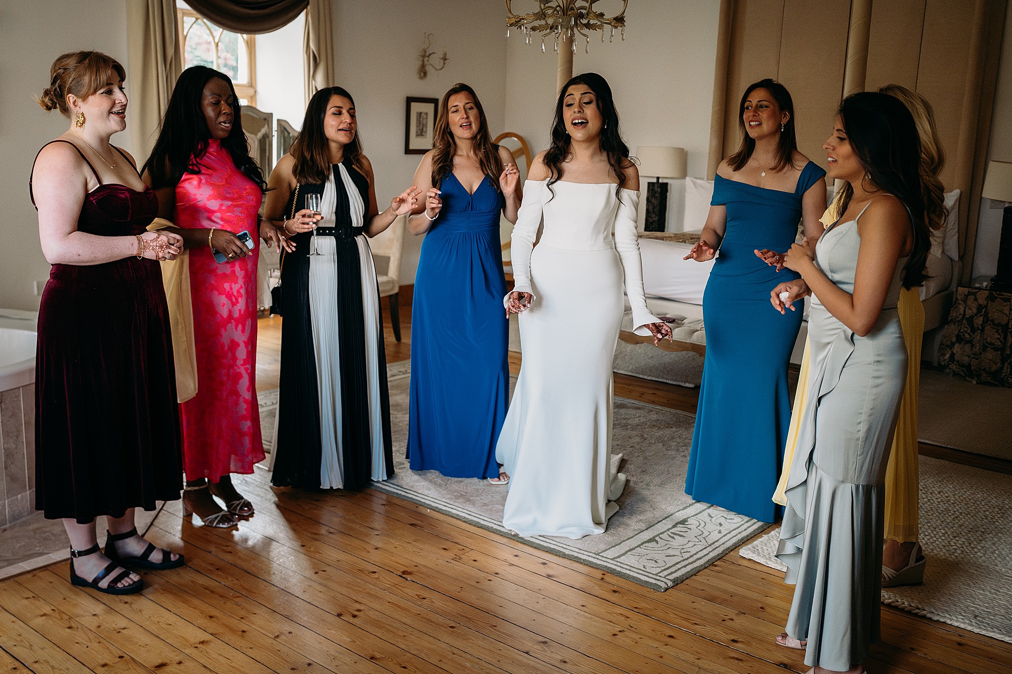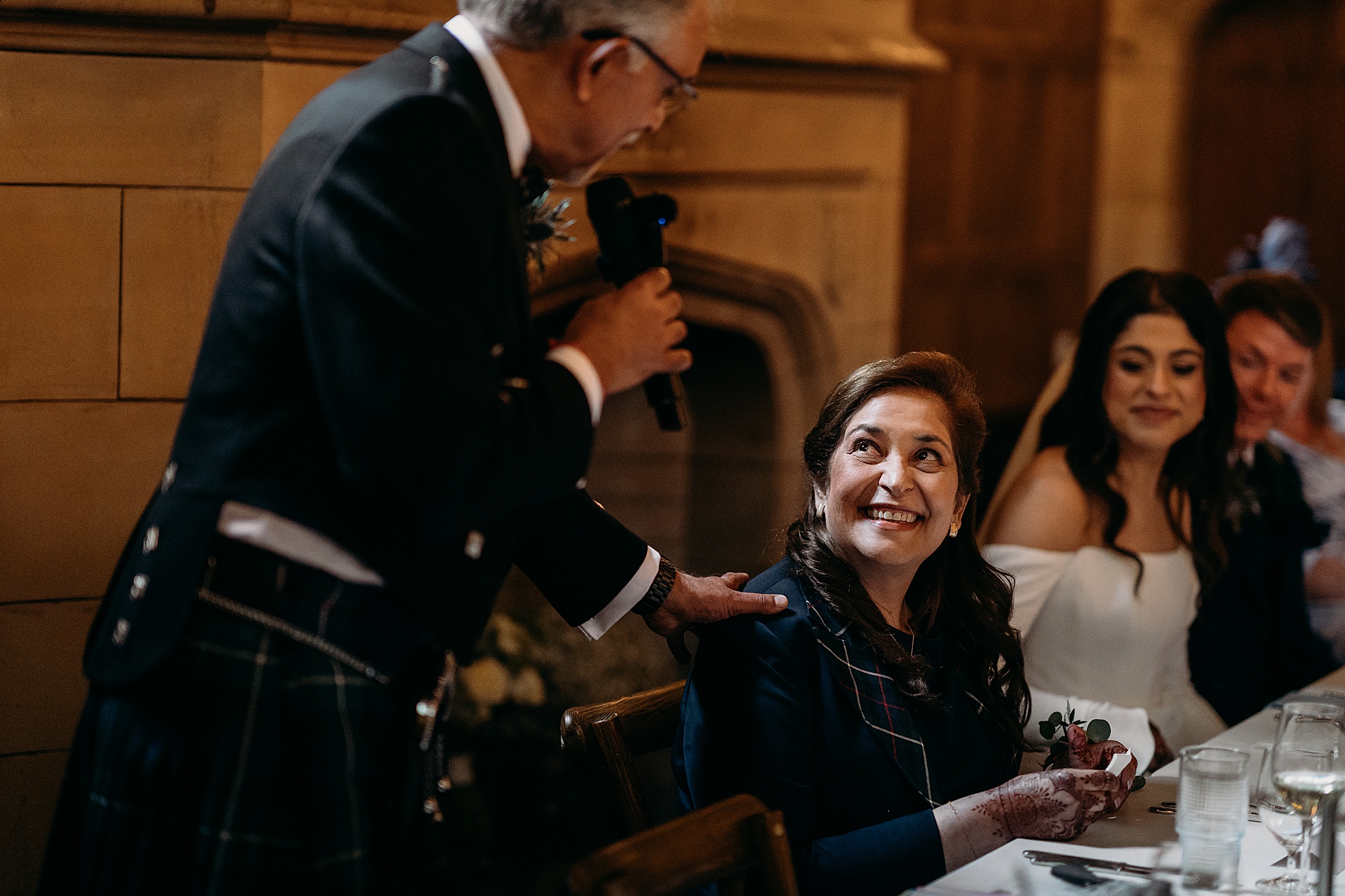 Her friends gathered during the speeches and began an incredible arrangement of Tum Se Hi woven into Loch Lomond. It caught him completely off guard, and honestly most of the room too, us included. One of those moments that stays with you for sure!
