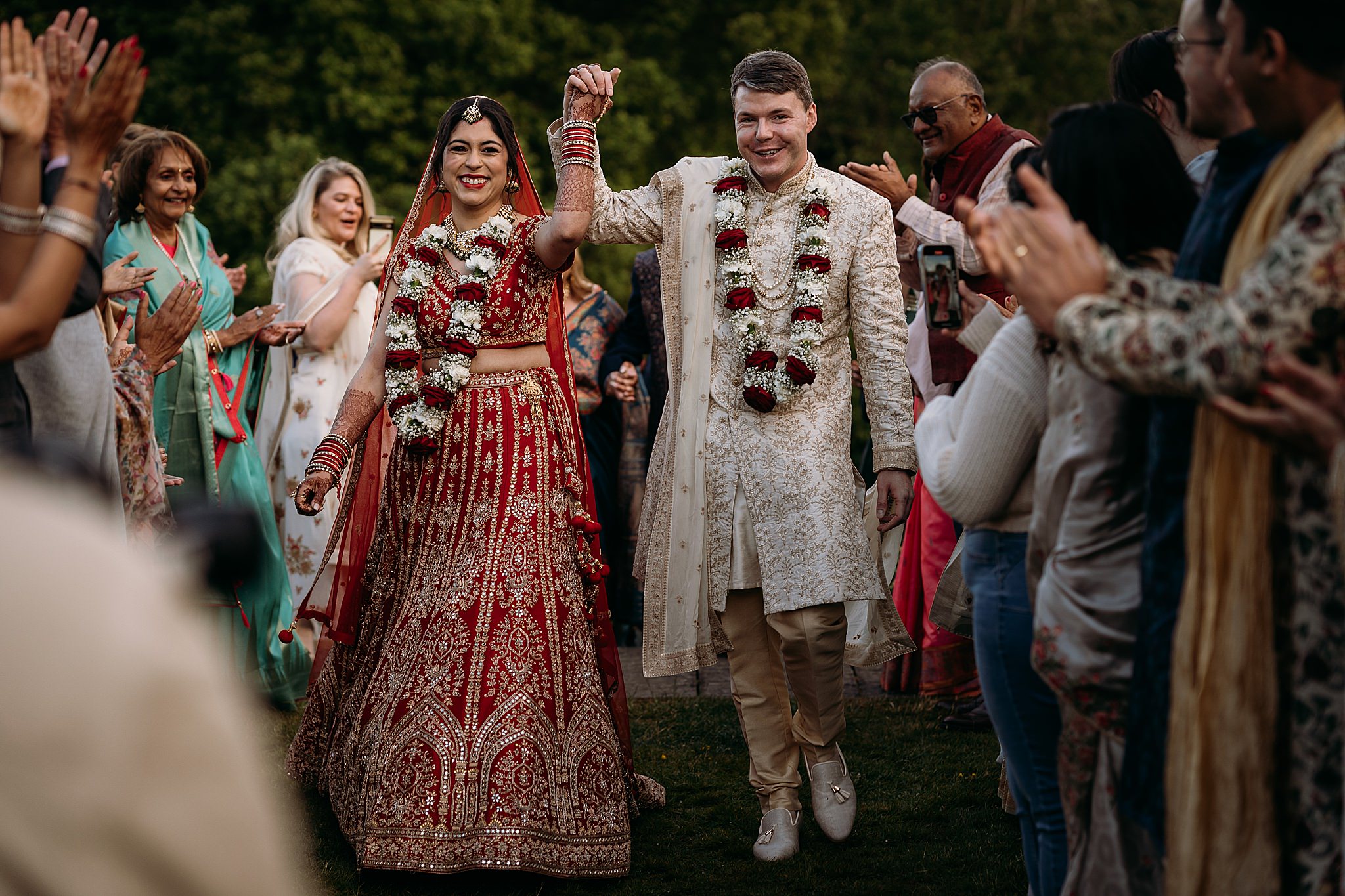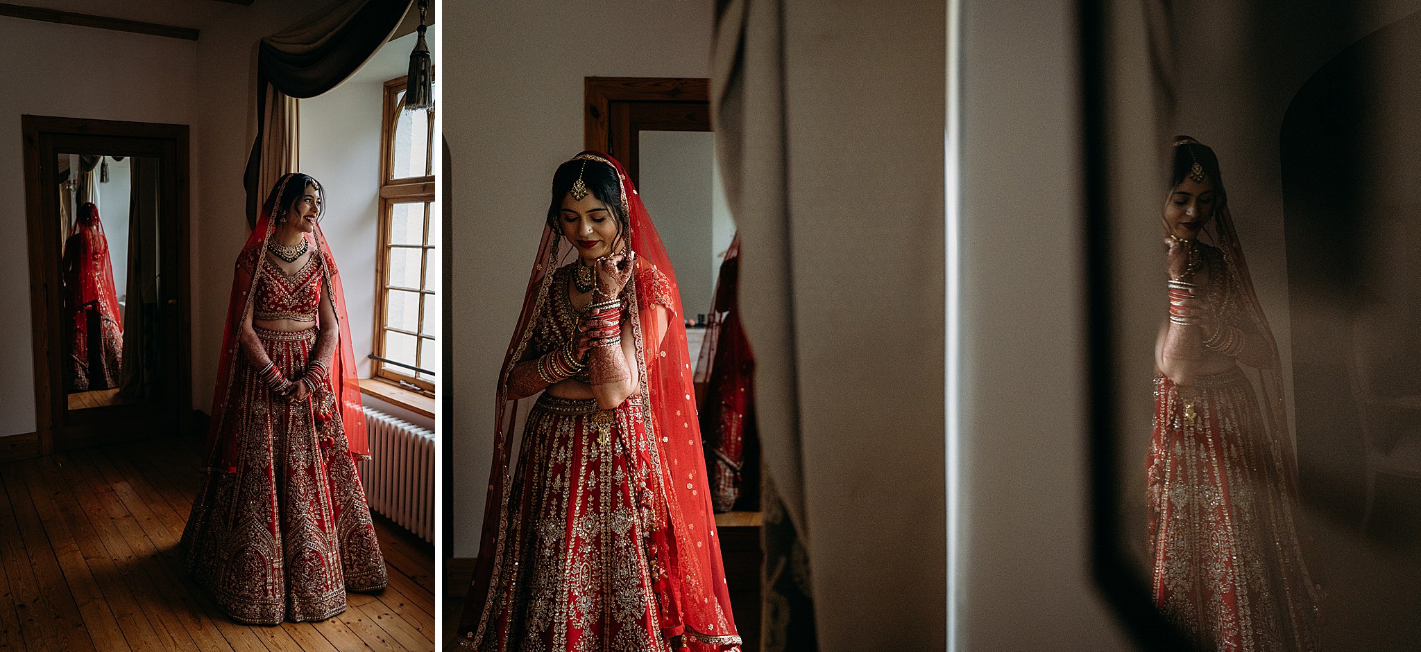 Rahee wore an incredible red lengha from Kajals Couture (a complete surprise to Adam — his face said everything!) Her henna by Scotland Henna was incredible, as was her hair and makeup by Makeup by Leena.